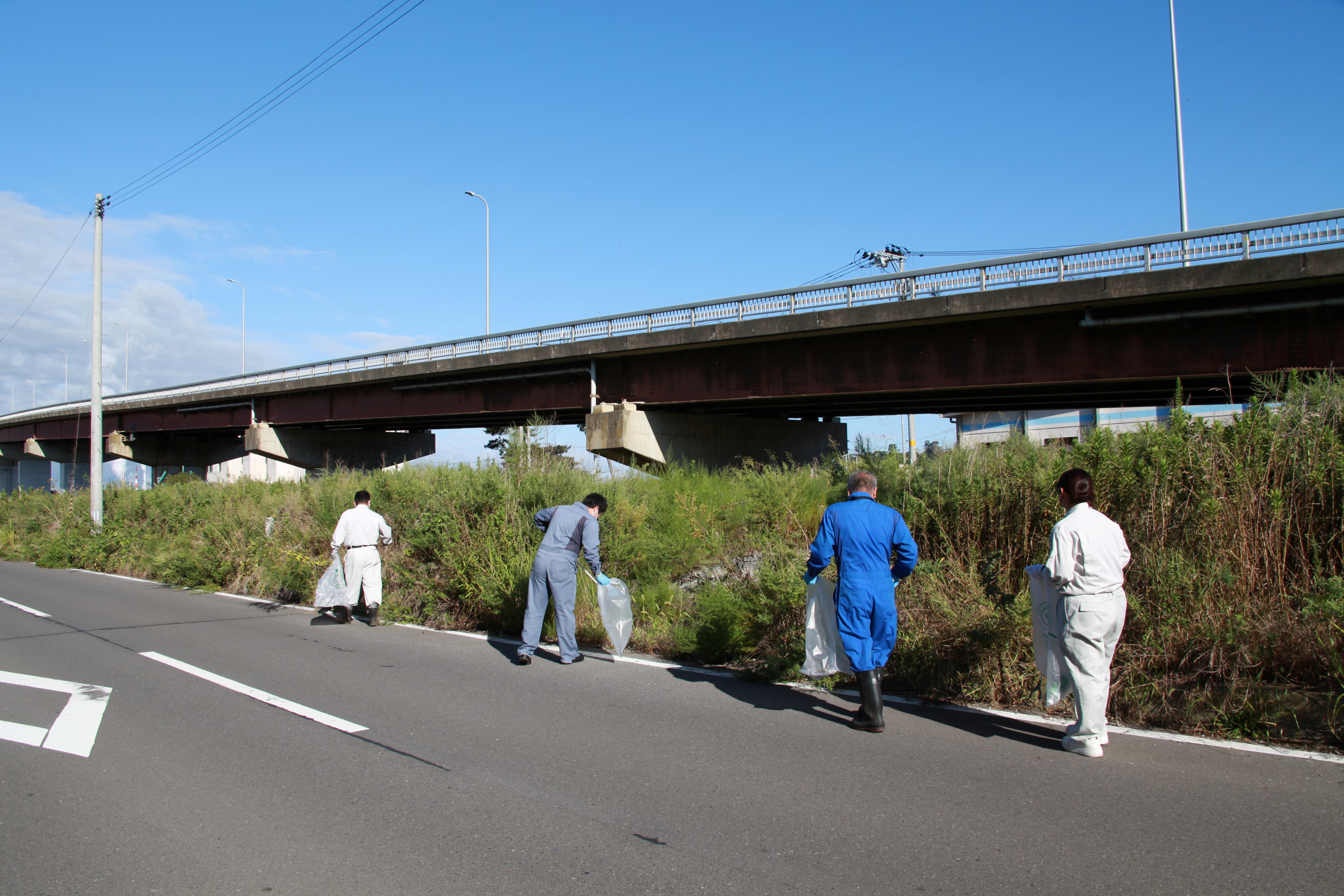 今回で59回目となるスマイルロードプログラムを9月6日に実施しました。 県道石巻・女川線の約400m区間の路面清掃活動を午前7時30分から約30分間、社員35名で行いました。タバコの吸い殻やペットボトル、空き瓶や空き缶など7袋分を収集しました。次回は12月に実施予定です。
